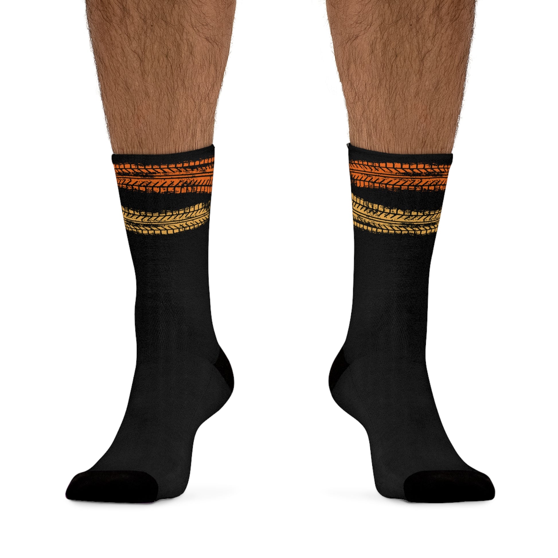 These socks have an unprecedented amount of stretch with durable print quality. -58% Recycled Polyester 22% Nylon 15% Cotton 5% Elastane -200 needle knit premium socks -One size fits all (W's size 5 US up to M's size 12 US)